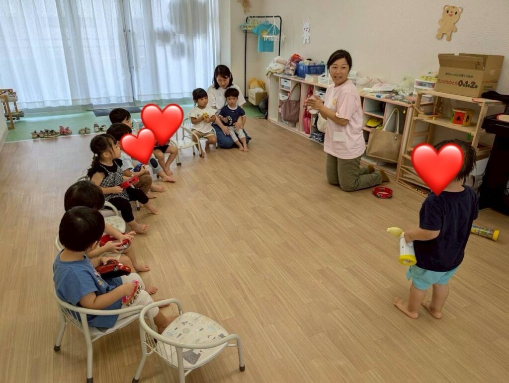 今日から入会したお友達を気にかけて、泣いているときにヨシヨシしてあげたり、お友達を思いやる優しい姿が見られ、先生たちもホッコリしました。