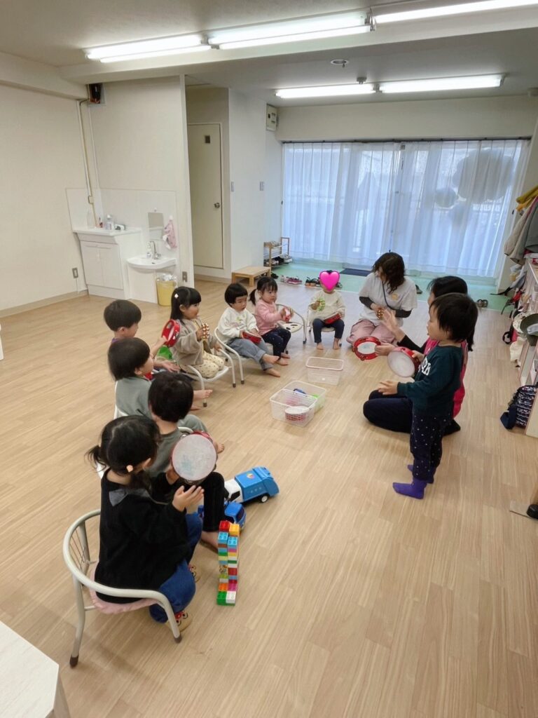 リズム遊びと朝の挨拶のあとに、