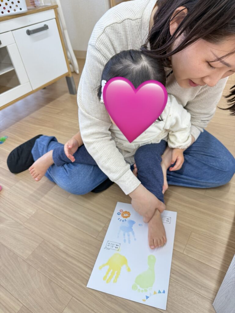 午前中、好きな遊びを楽しみながら発育測定と手型足型スタンプをしました。