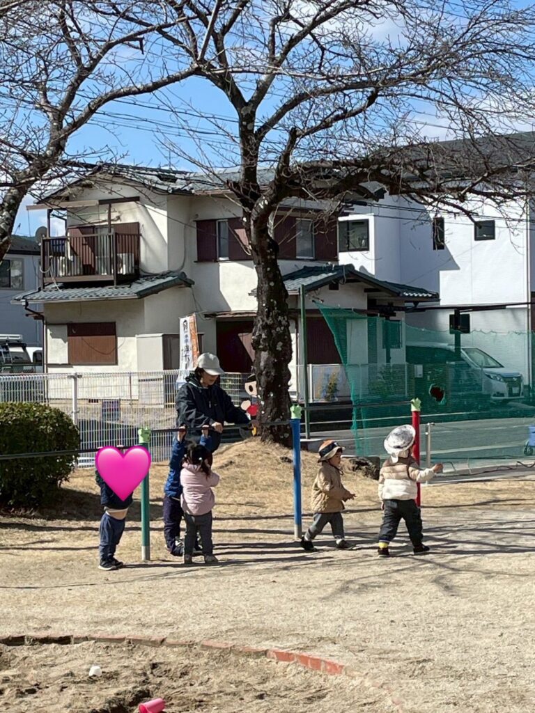 晴れてはいましたが、風が冷たかったです。それでも、みんな元気に楽しく外遊びを楽しみました。
