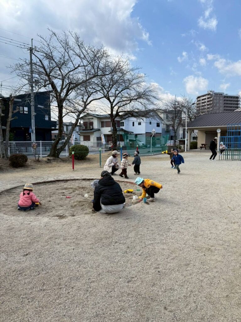 ブランコに一緒に乗ってお話ししたり、「こっちおいでー!」と友だちを呼んだり、子どもたち同士の関わりが増えてとっても楽しそうでした。