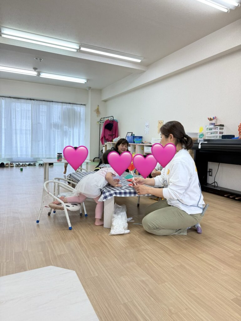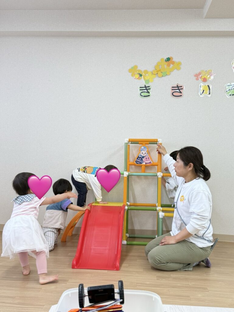 バイバイの時に泣いた子や、バイバイの時は平気だったけど「お母さんがいない💦」と気づいて泣き出す子、新しいおもちゃが気になって、遊び始める子など、様子は様々でした。