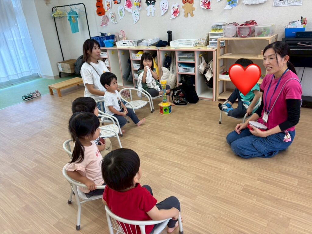 「タンバリンを叩きたい!」のリクエストに答えて、♪山の音楽家に合わせてタンバリンを楽しみ、絵本を読んで「さようなら」の挨拶をしました。